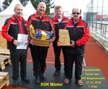 Am Samstag 27. Januar 2018 trafen sich zehn Mannschaften zu unserm traditionellen Freundschaftsturnier. Leider musste Brigels aus gesundheitlichen Gründen Forfait geben. Der ESV Sarganserland wünscht an dieser Stelle, alles Gute und Zuversicht !