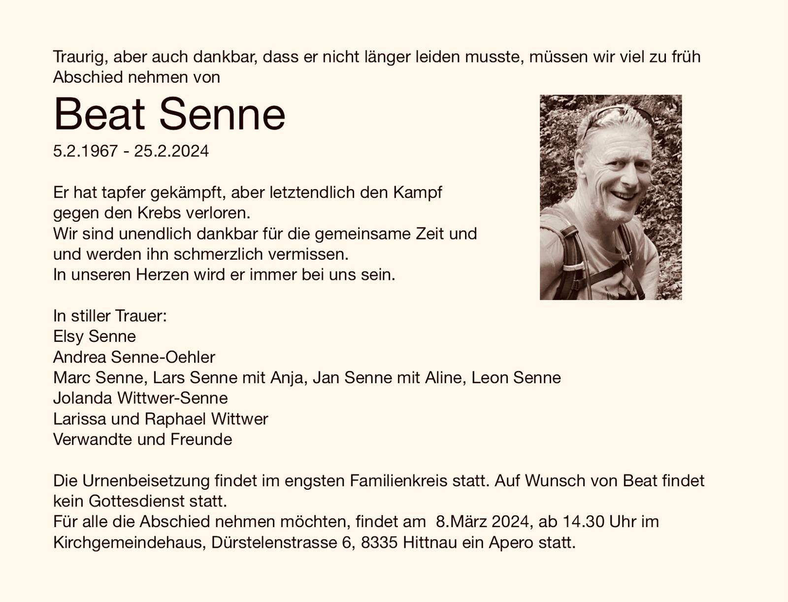 Todesanzeige Beat Senne 05.02.1967-25.02.2024